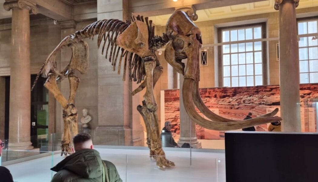 The mammoth skeleton replica, which is displayed in the museum’s main hall, was created by 3D scanning a twin skeleton on display at the Discovery Centre in Craven Arms, Shropshire. The bones and tusks were then 3D printed and painted to replicate bone.